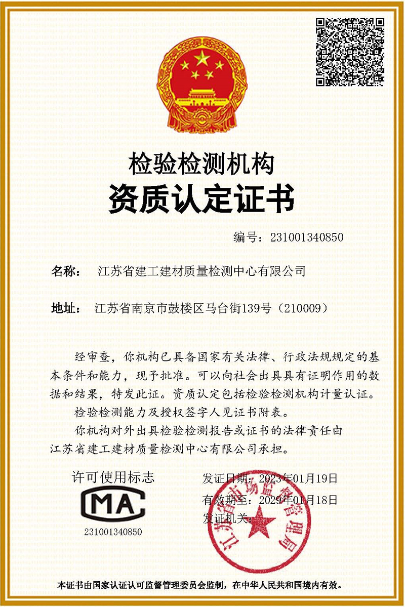 建設(shè)工程質(zhì)量檢測機(jī)構(gòu)資質(zhì)證書