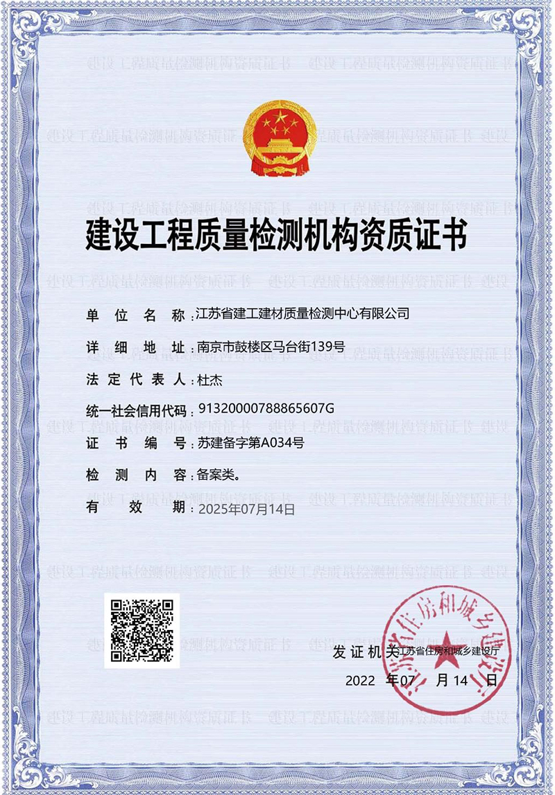 建設(shè)工程質(zhì)量檢測(cè)機(jī)構(gòu)資質(zhì)證書