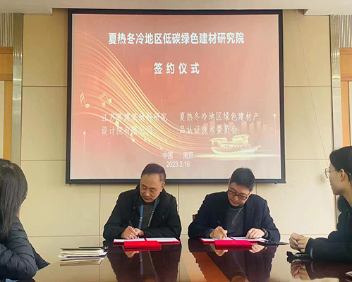 近期,我司與綠色建材產(chǎn)品認證技術委員會夏熱冬冷地區(qū)工作委員會在江蘇省建筑材料研究設計院有限公司簽署了夏熱冬冷地區(qū)低碳綠色建材研究院合作協(xié)議。