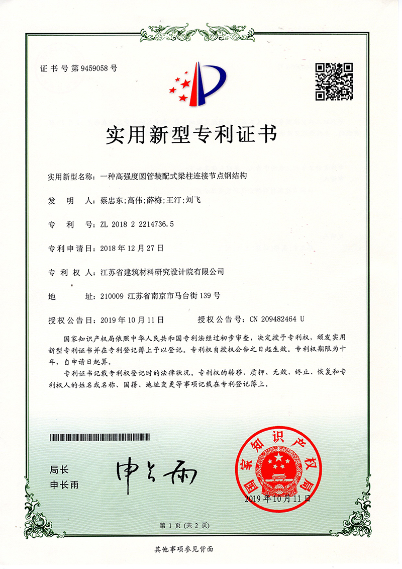 實(shí)用新型專利證書